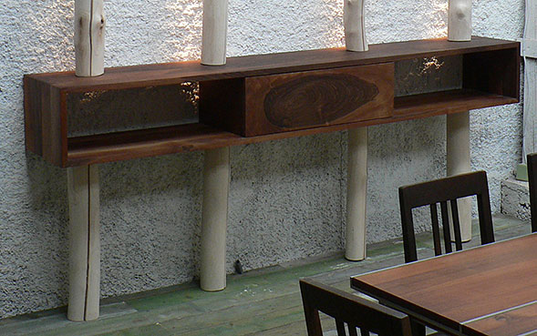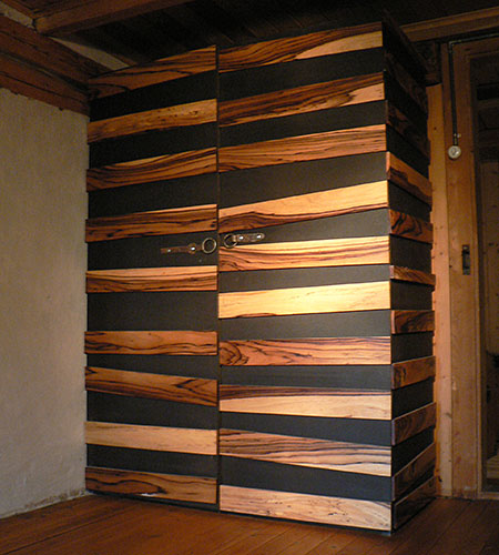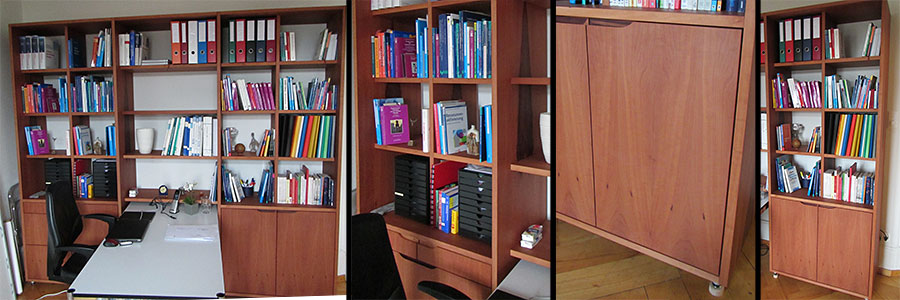 Der multifunktionale Schrank auf Rädern, ideal für den mobilen Einsatz auf Tournee im oder ausser Haus, integrierter Tisch, Lampe, Garderobe – all in one.